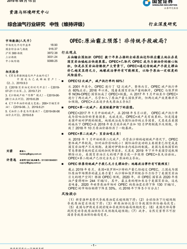 【国金证券】【20190915】综合油气行业研究欧佩克:原油霸主陨落!非传统手段破局?-39页