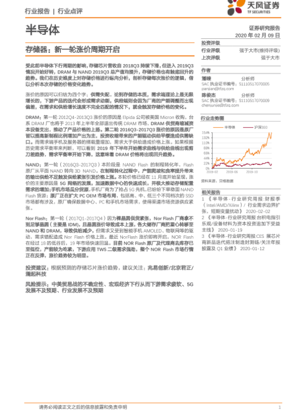 【天风证券】【20200209】半导体行业:存储器,新一轮涨价周期开启-16页