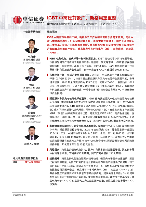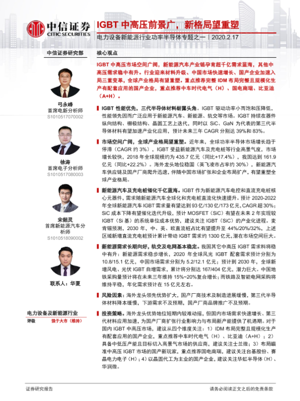 【中信证券】【20200217】电力设备及新能源行业功率半导体专题之一:IGBT中高压前景广,新格局望重塑-33页