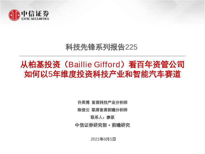 【中信证券】【20210805】从柏基投资(Baillie Gifford)看百年资管公司如何以5年维度投资科技产业和智能汽车赛道-22页