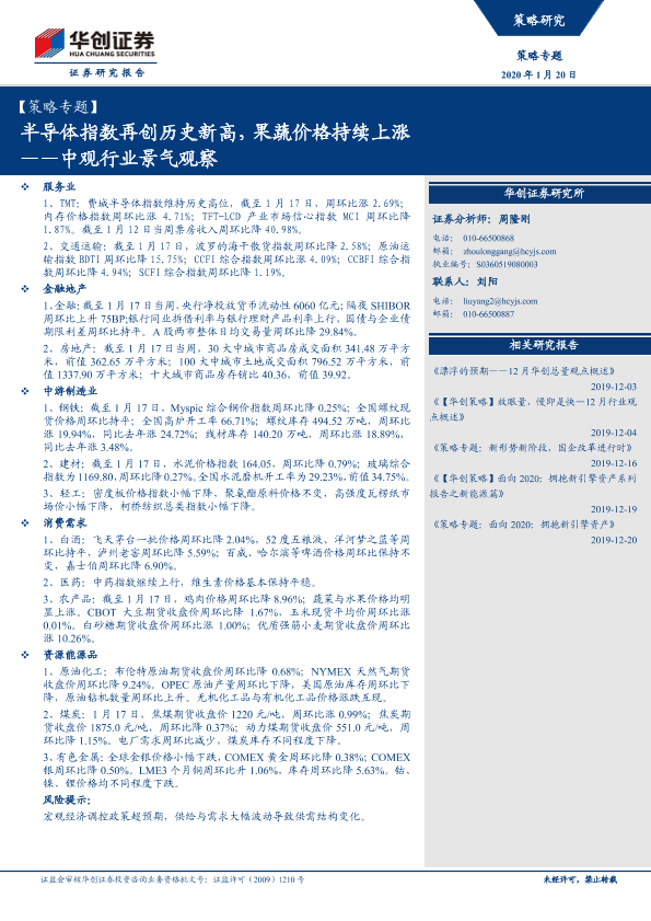 【华创证券】【20200120】策略专题:中观行业景气观察,半导体指数再创历史新高,果蔬价格持续上涨-26页