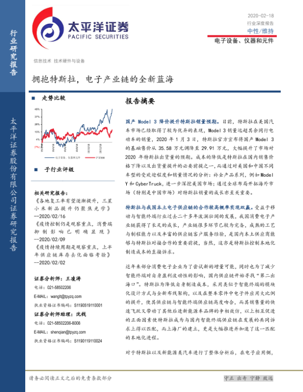 【太平洋证券】【20200218】电子设备、仪器和元件行业:拥抱特斯拉,电子产业链的全新蓝海-32页