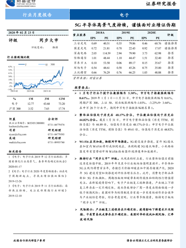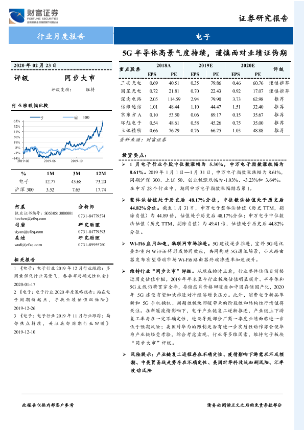 【财富证券】【20200223】电子行业:5G半导体高景气度持续,谨慎面对业绩证伪期-16页