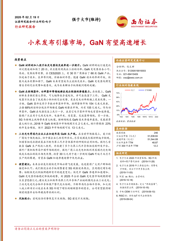 【西南证券】【20200219】电子行业:小米发布引爆市场,GaN有望高速增长-15页