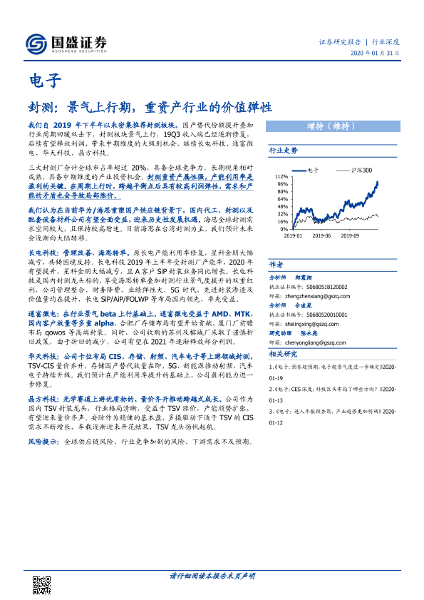 【国盛证券】【20200131】电子行业:封测,景气上行期,重资产行业的价值弹性-101页