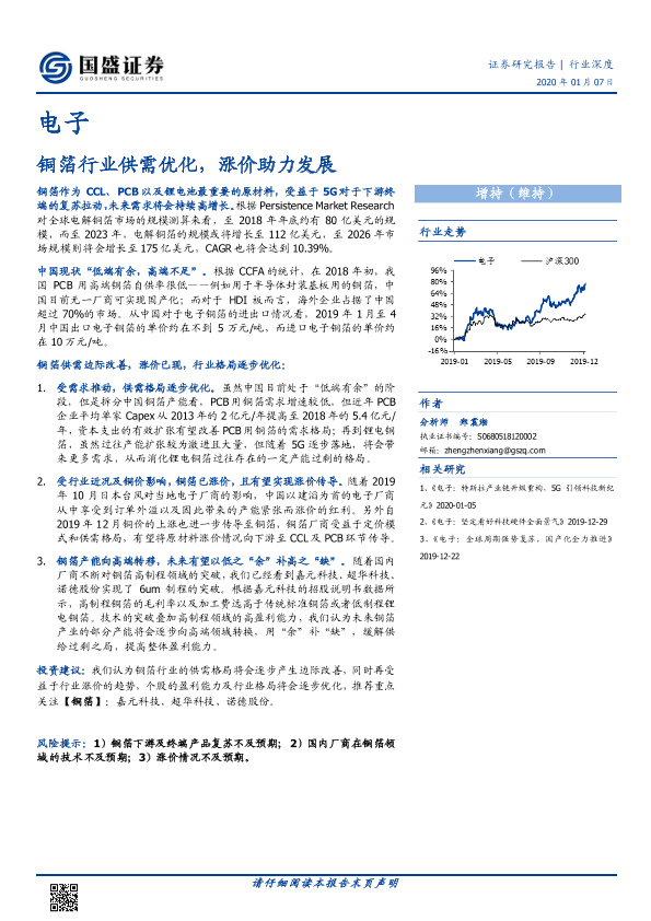 【国盛证券】【20200107】电子行业:铜箔行业供需优化,涨价助力发展-20页