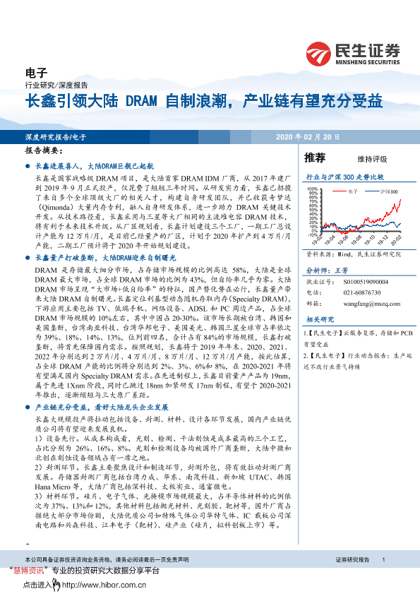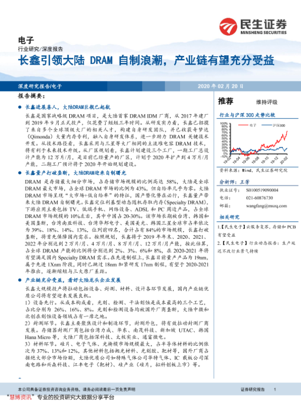 【民生证券】【20200220】电子行业:长鑫引领大陆DRAM自制浪潮,产业链有望充分受益-33页