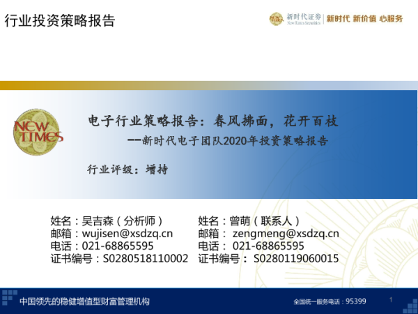 【新时代证券】【20191231】电子行业策略报告:春风拂面,花开百枝-87页