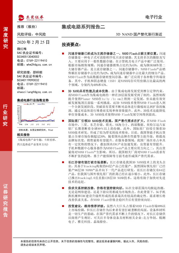 【东莞证券】【20200225】电子行业集成电路系列报告二:3D_NAND国产替代渐行渐近-30页