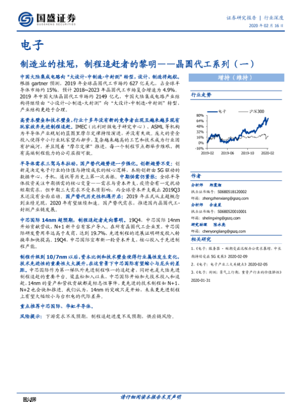 【国盛证券】【20200216】电子行业晶圆代工系列(一):制造业的桂冠,制程追赶者的黎明-55页