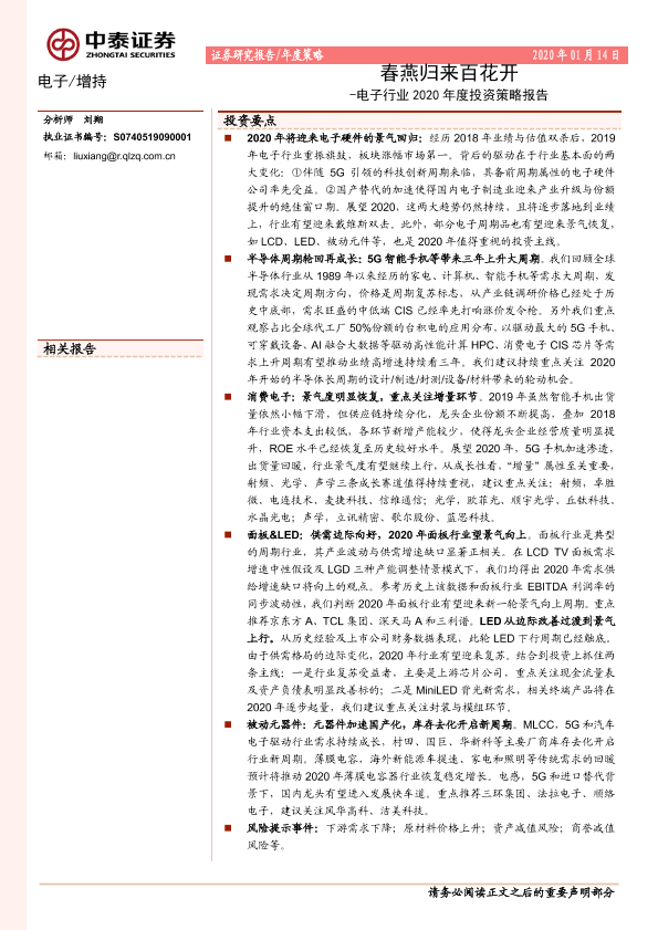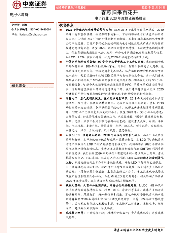 【中泰证券】【20200114】电子行业年度策略:春燕归来百花开-60页