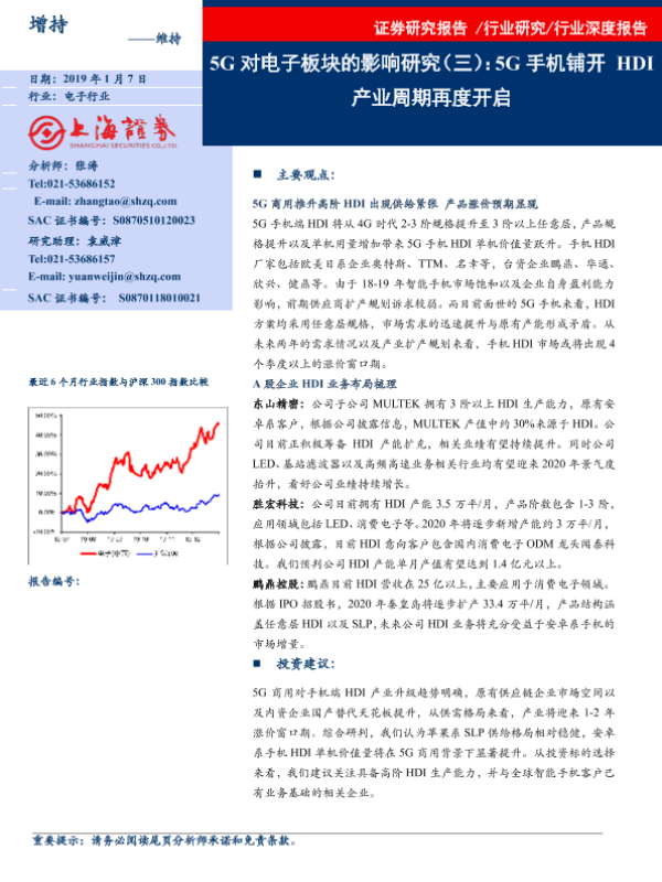 【上海证券】【20200107】电子行业深度报告:5G对电子板块的影响研究(三),5G手机铺开HDI产业周期再度开启-22页