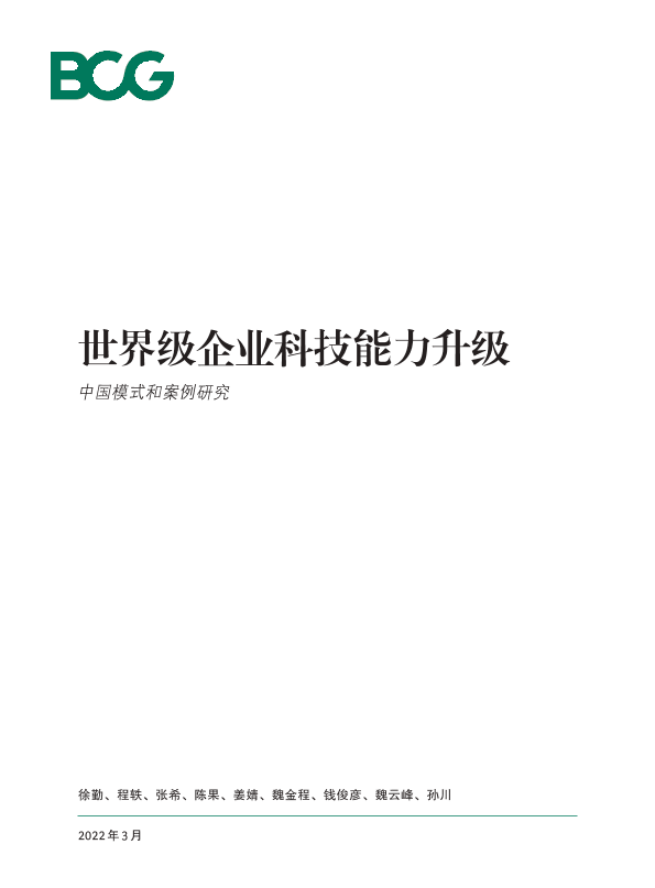 【波士顿咨询公司】【20220301】2022世界级企业科技能力升级-中国模式和案例研究-23页