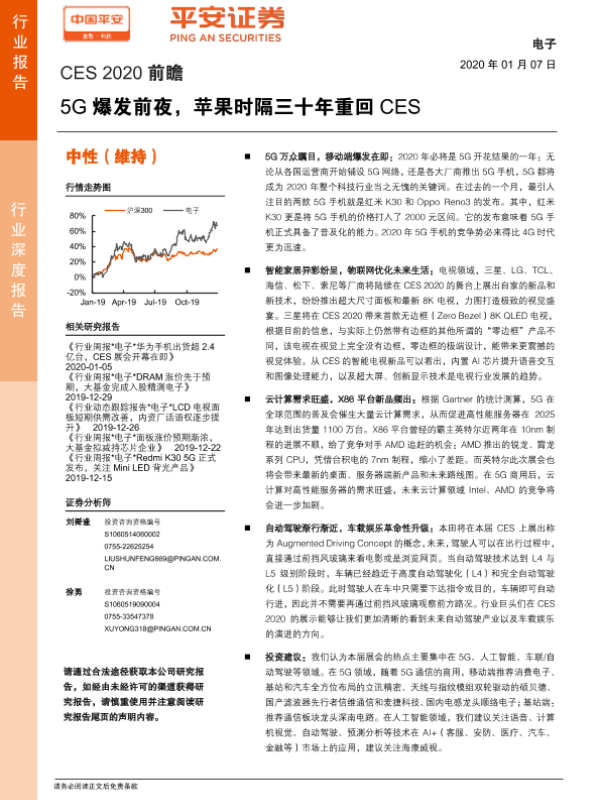 【平安证券】【20200107】电子行业深度报告:CES_2020前瞻,5G爆发前夜,苹果时隔三十年重回CES-19页