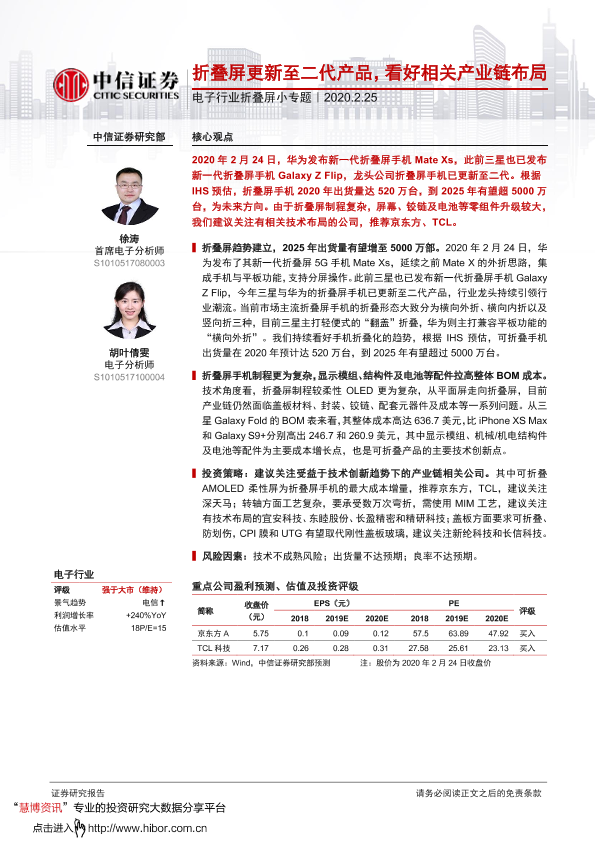 【中信证券】【20200225】电子行业折叠屏小专题:折叠屏更新至二代产品,看好相关产业链布局-17页