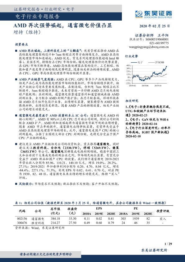 【东吴证券】【20200225】电子行业专题报告:AMD再次强势崛起,通富微电价值凸显-30页