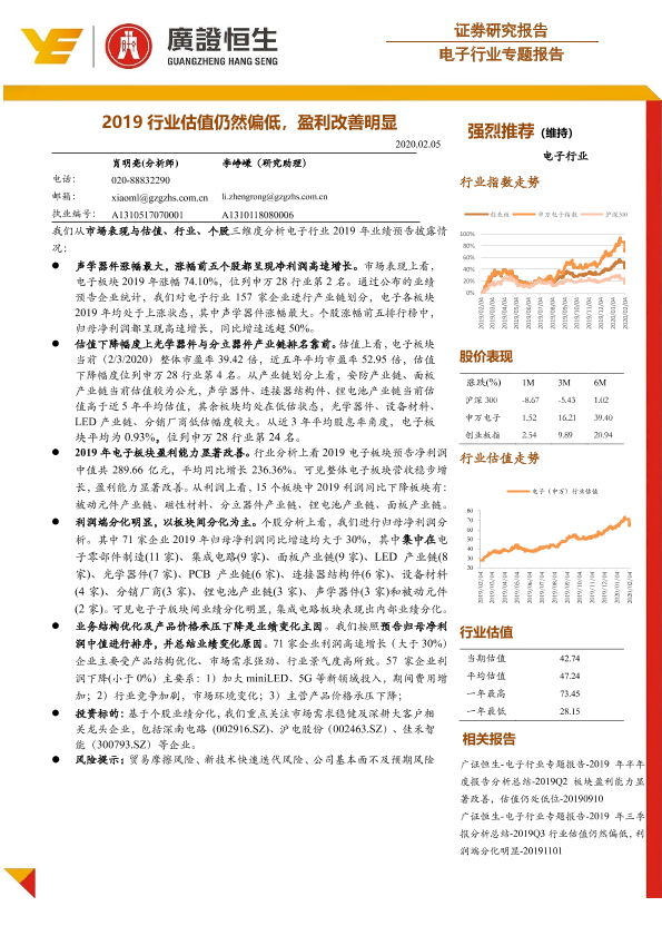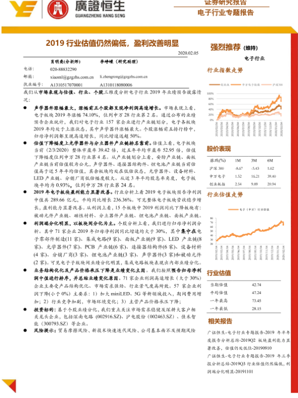 【广证恒生】【20200205】电子行业专题报告:2019行业估值仍然偏低,盈利改善明显-20页