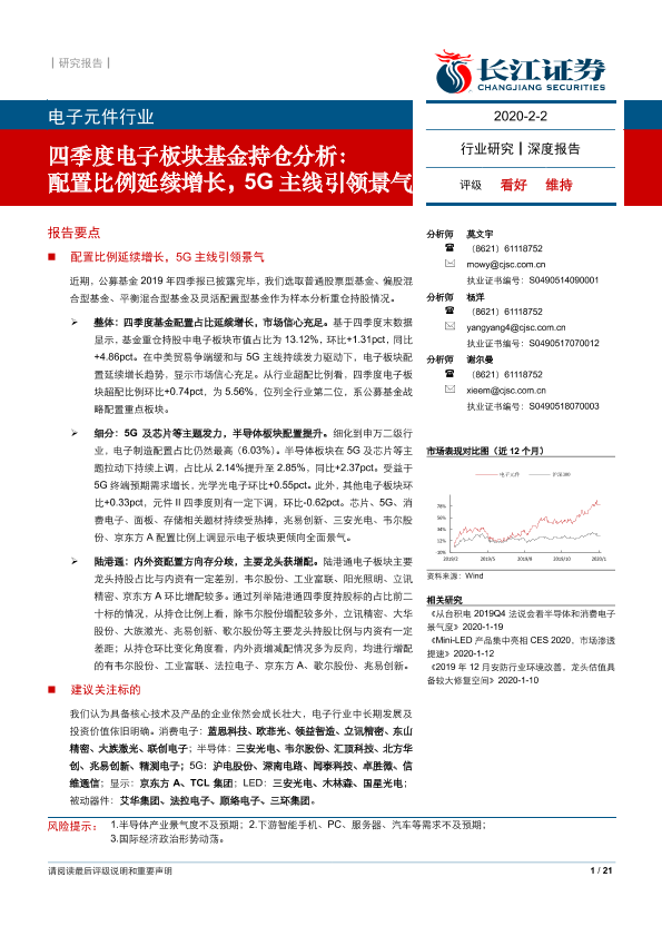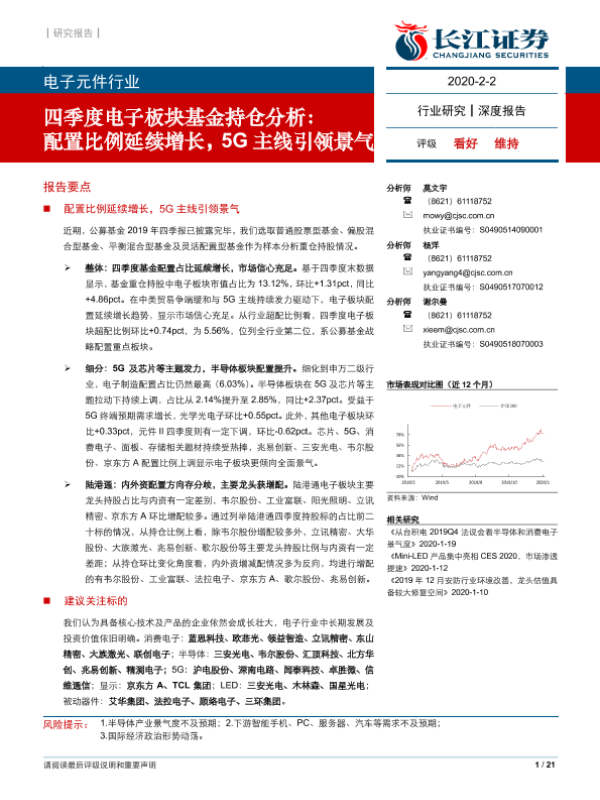 【长江证券】【20200202】电子元件行业四季度电子板块基金持仓分析:配置比例延续增长,5G主线引领景气-22页