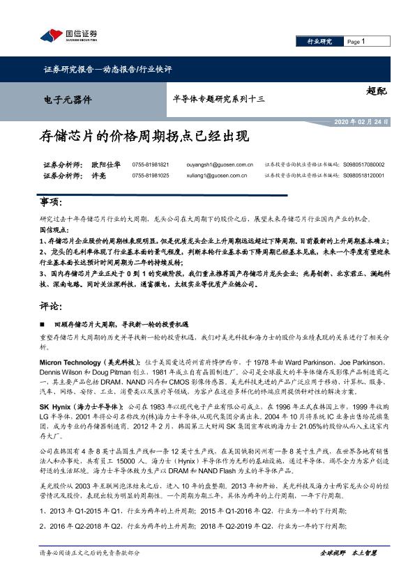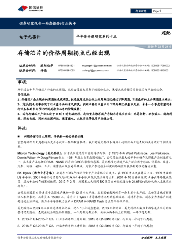 【国信证券】【20200224】电子元器件行业半导体专题研究系列十三:存储芯片的价格周期拐点已经出现-16页