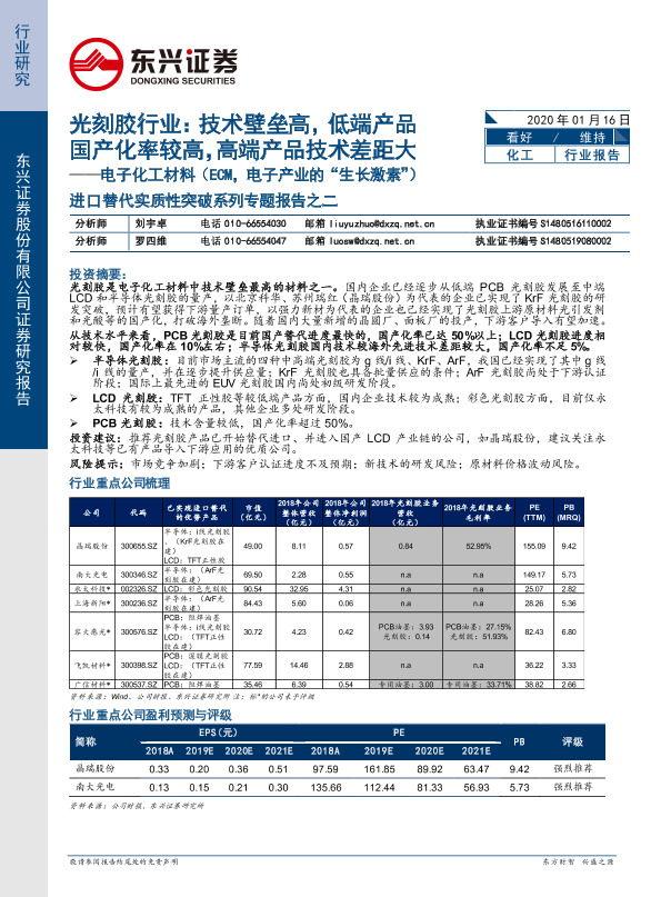 LCD 光刻胶 半导体 电子化工材料 进口替代