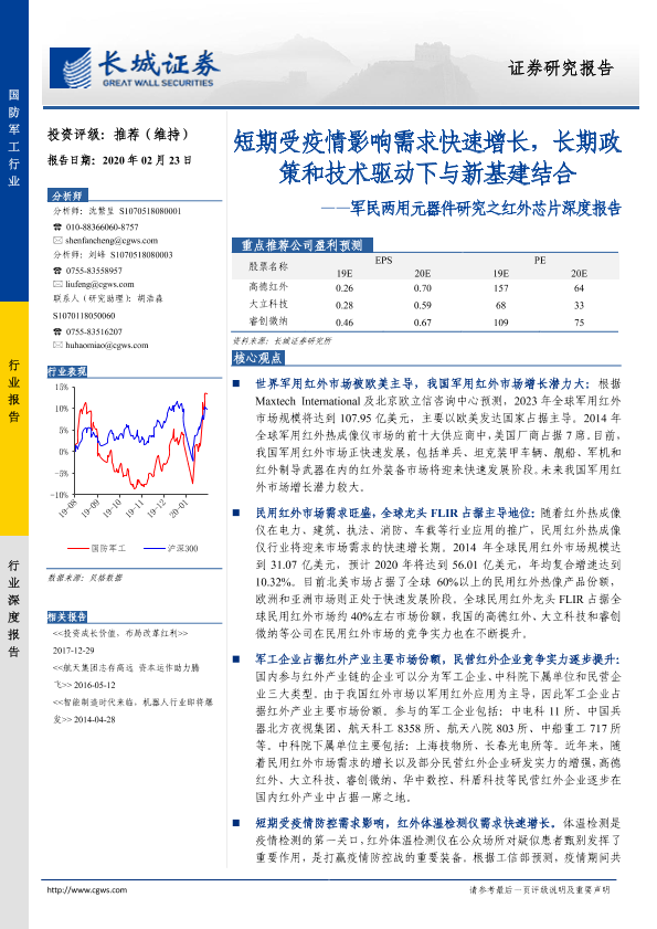 【长城证券】【20200223】国防军工行业军民两用元器件研究之红外芯片深度报告:短期受疫情影响需求快速增长,长期政策和技术驱动下与新基建结合-41页