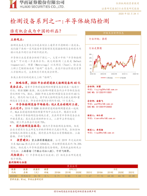 【华西证券】【20200224】机械设备行业:检测设备系列之一,半导体缺陷检测,谁有机会成为中国的科磊?-23页