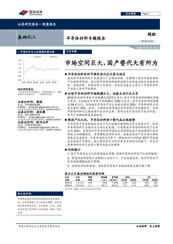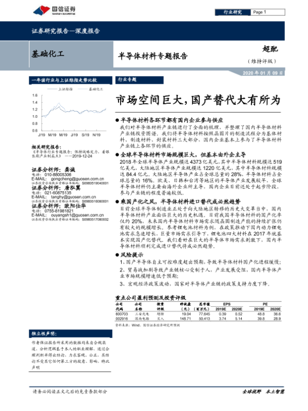 【国信证券】【20200109】基础化工行业半导体材料专题报告:市场空间巨大,国产替代大有所为-23页