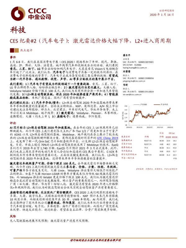 【中金公司】【20200114】科技行业CES纪要_2(汽车电子):激光雷达价格大幅下降,L2+进入商用期-17页