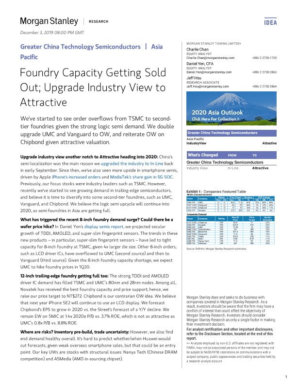【Morgan Stanley】【20191203】大中华区半导体行业:铸造厂产能即将售罄-37页