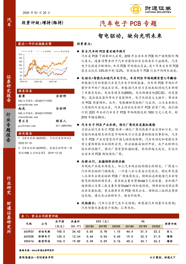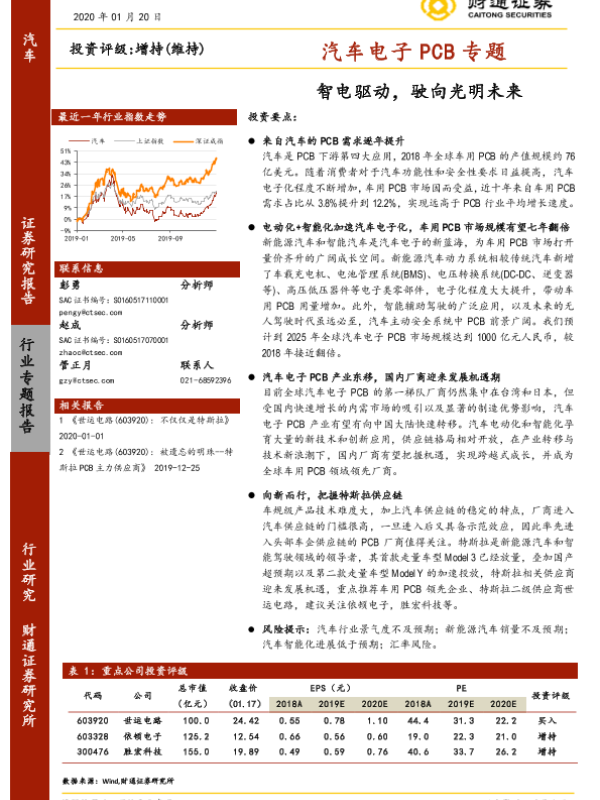 【财通证券】【20200120】汽车行业汽车电子PCB专题:智电驱动,驶向光明未来-31页