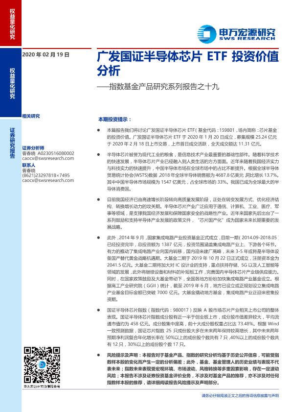【申万宏源】【20200219】指数基金产品研究系列报告之十九:广发国证半导体芯片ETF投资价值分析-18页