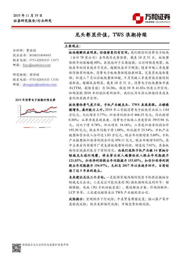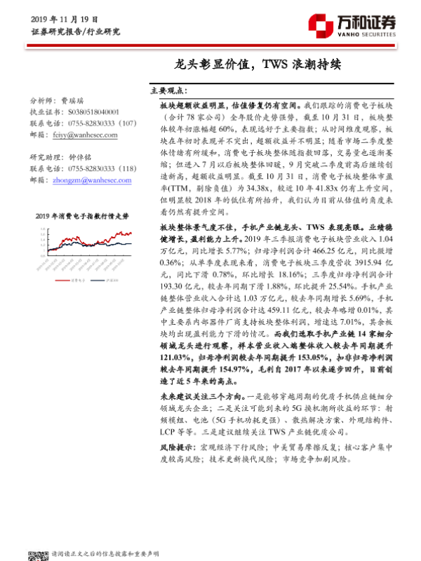 【万和证券】【20191119】消费电子行业:龙头彰显价值,TWS浪潮持续-21页