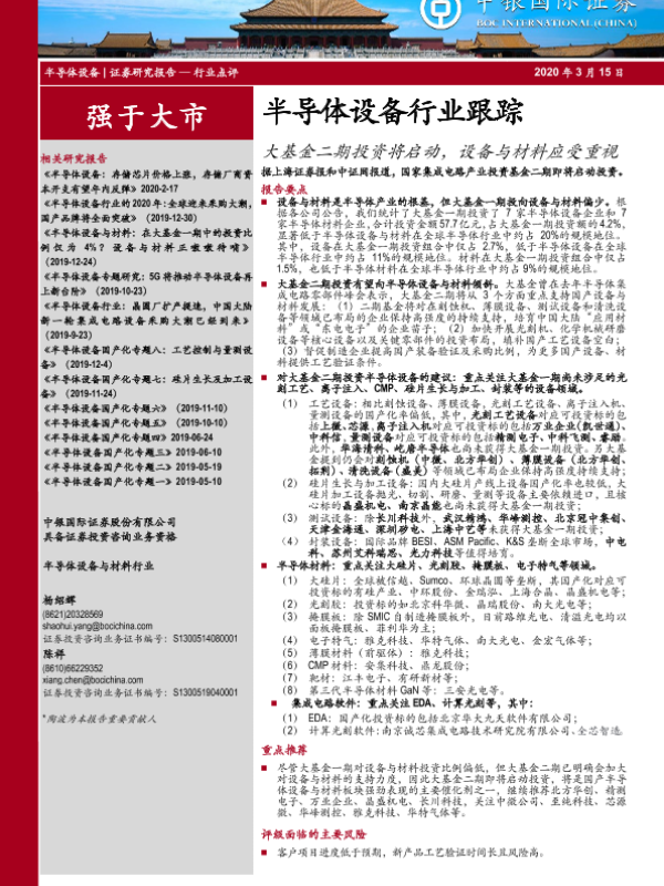 【中银证券】【20200315】半导体设备行业跟踪:大基金二期投资将启动,设备与材料应受重视-15页