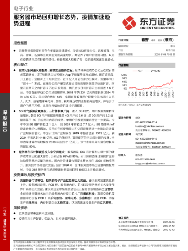 【东方证券】【20200302】电子行业:服务器市场回归增长态势,疫情加速趋势进程-15页