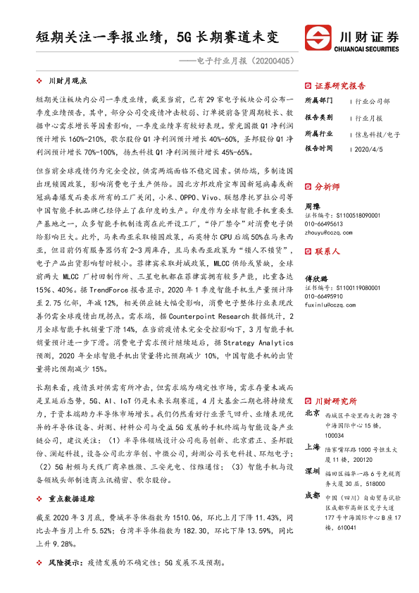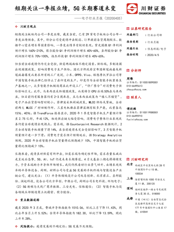 【川财证券】【20200405】电子行业月报:短期关注一季报业绩,5G长期赛道未变-21页