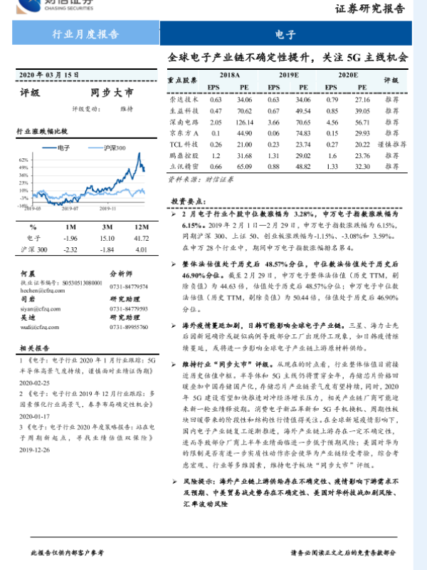 【财信证券】【20200315】电子行业月度报告:全球电子产业链不确定性提升,关注5G主线机会-18页
