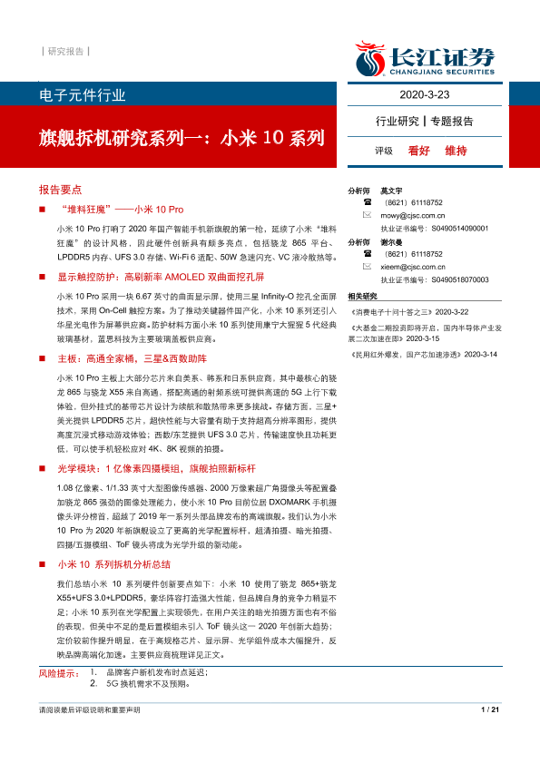 【长江证券】【20200323】电子元件行业:旗舰拆机研究系列一,小米10系列-22页