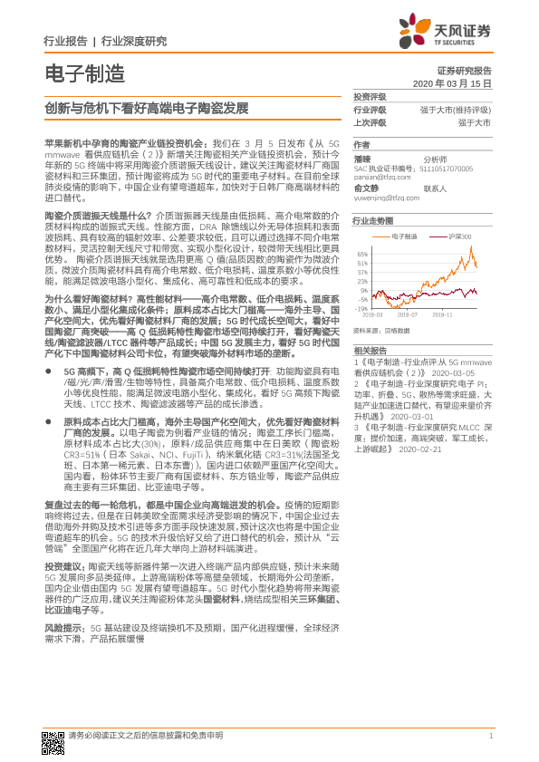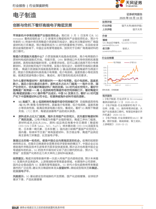【天风证券】【20200315】电子制造行业深度研究:创新与危机下看好高端电子陶瓷发展-25页