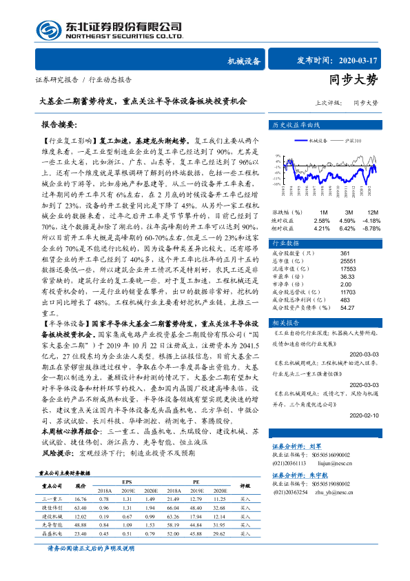 【东北证券】【20200317】机械设备行业:大基金二期蓄势待发,重点关注半导体设备板块投资机会-15页