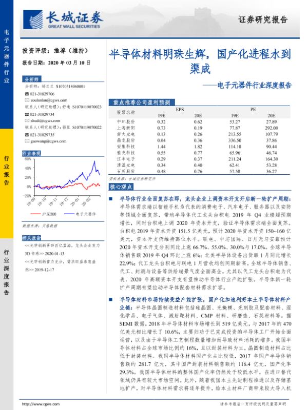 【长城证券】【20200310】电子元器件行业深度报告:半导体材料明珠生辉,国产化进程水到渠成-50页