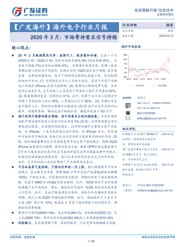 【广发证券】【20200312】海外电子行业月报:2020年3月,市场等待需求信号持稳-25页