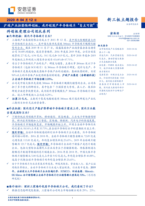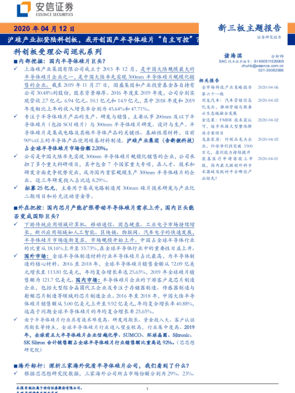 【安信证券】【20200412】科创板受理公司巡礼系列:沪硅产业拟登陆科创板,或开创国产半导体硅片“自主可控”?-51页