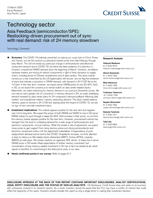 【瑞信】【20200312】瑞信-亚洲半导体行业:库存驱动采购与实际需求不同步-66页