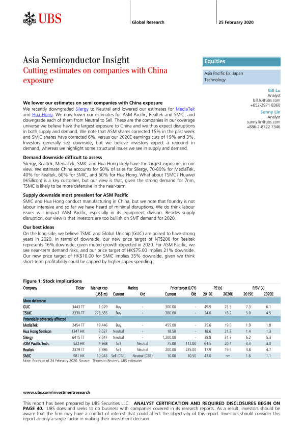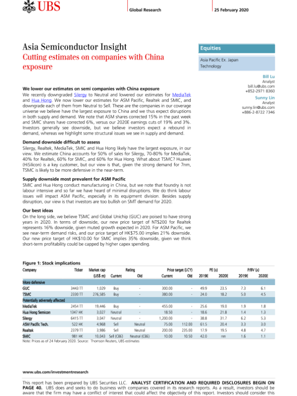 【UBS Securities LLC】【20200225】瑞银-亚太地区-半导体行业-亚洲半导体洞察:下调对中国企业的估值-48页