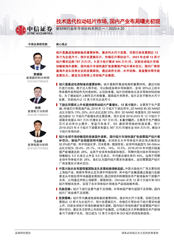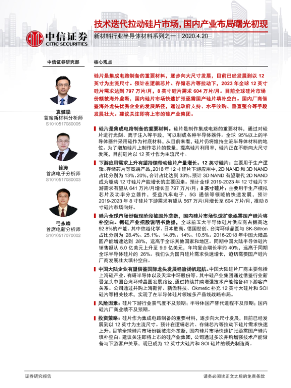 【中信证券】【20200420】新材料行业半导体材料系列之一:技术迭代拉动硅片市场,国内产业布局曙光初现-52页