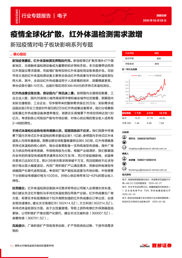 【西部证券】【20200305】新冠疫情对电子行业板块影响系列专题:疫情全球化扩散,红外体温检测需求激增-11页
