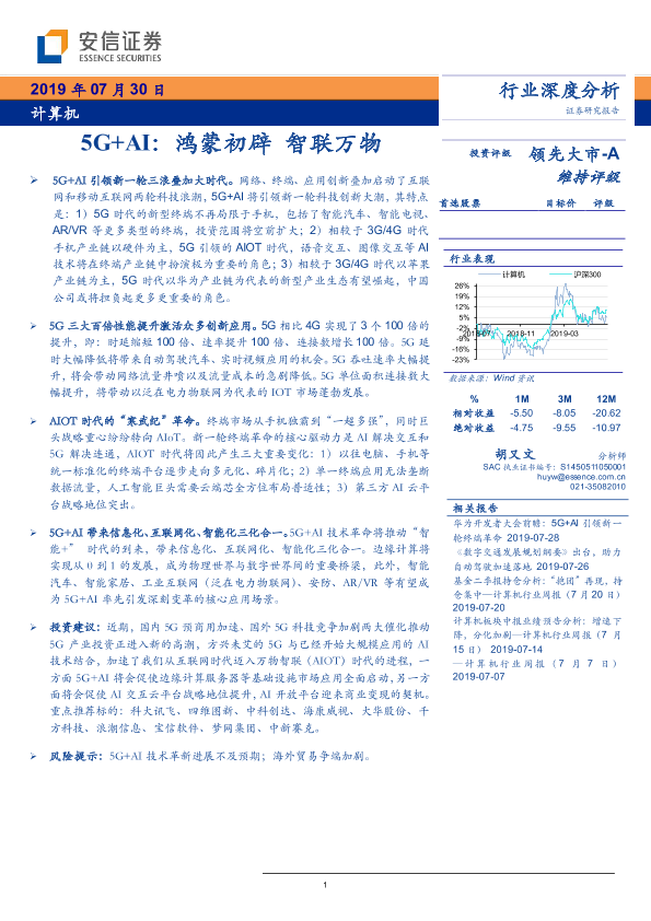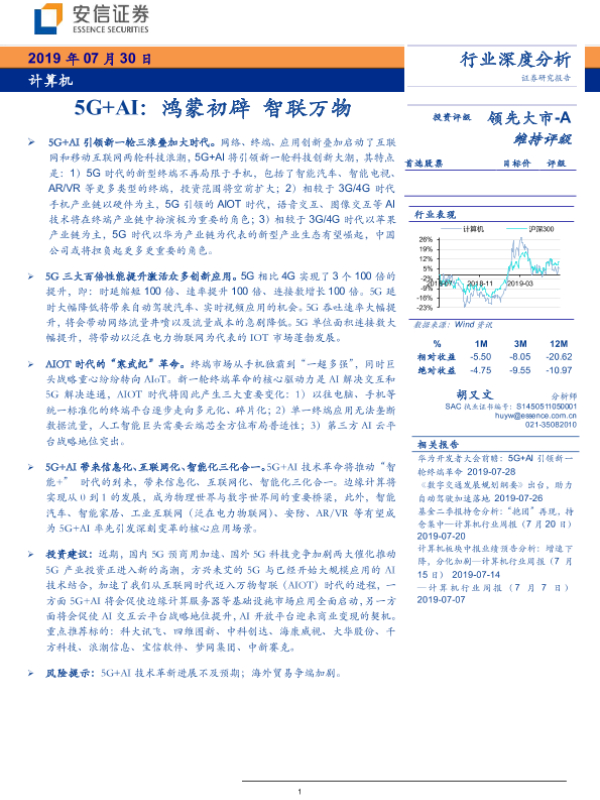 【安信证券】【20190730】计算机行业5G+人工智能:鸿蒙初辟,智联万物-54页