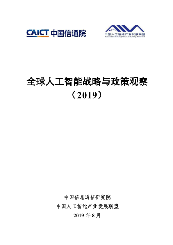 【中国信息通信研究院】【201908】全球人工智能战略与政策观察(2019)-60页