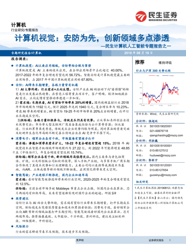 【民生证券】【20190819】计算机行业人工智能深度报告-计算机视觉安防为先,龙头深入-39页