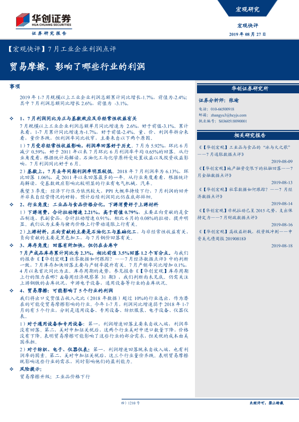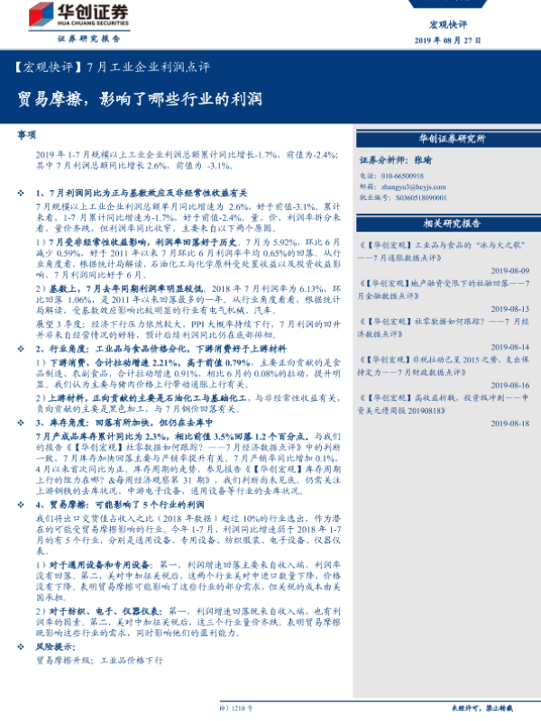 【华创证券】【20190827】7月工业企业利润点评:贸易摩擦,影响了哪些行业的利润-11页